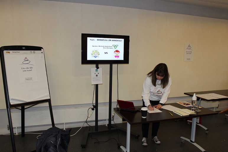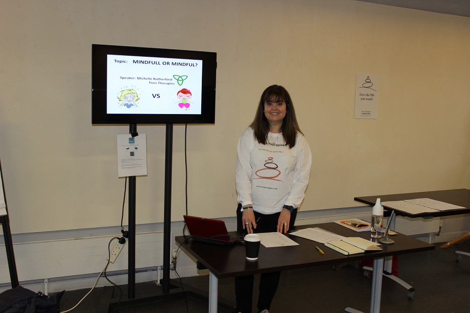 The aim of the presentation was to introduce the mindfulness that I practice based on the dialectical behaviour therapy (DBT) model of mindfulness practice. There's a lot of confusion between mindfulness with a practical element to it like the sessions today and the Buddhist principle and practices of mindfulness.